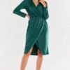 Envelope dress with elastic waistband, allowing to adjust the creation at the waist. The sleeve is long and tapered at the bottom. The dress is sewn from a delicate fabric, on an elastic lining. The dress is made in Poland.