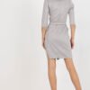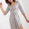 Short dress with 3/4 sleeves, fastened with a covered zipper. Dress with decorative tassels and a tie belt.