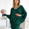 Bat dress with neckline. Made of elastic material with glitter. Dress in the color of bottle green. Brand numoco. Polish production.