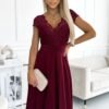 Exclusive chiffon dress with short sleeves, lace neckline and back cutout. The dress comes in maroon color. Polish production. Numoco brand.