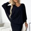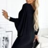 Bat dress with neckline. Made of stretch fabric with glitter. It can be worn straight or loosened. Dress in black with glitter. Brand numoco. Polish production.