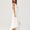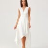 The maxi dress is made of shimmering satin fabric. Its asymmetrical hem and deep neckline add subtle femininity, while its flared cut ensures freedom of movement. The evening dress has a beautiful envelope neckline, which optically lengthens our figure and beautifully emphasizes the bust. Wide tapering at the waist, which will beautifully emphasize the feminine assets. The maxi dress is also characterized by an asymmetrical cut, which allows you to show your legs. The dress is fastened with a covered zipper at the back of the model. The product is manufactured and sewn in Poland.