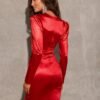 This satin mini dress is a true gem in the fashion world. With a ruffled front, long sleeves and an envelope front, it exudes elegance and finesse. Fastened with a discreet zipper, it provides comfortable wear and perfectly emphasizes the silhouette. The satin material gives it a subtle sheen, making it suitable for both evening outings and more formal occasions. This dress is an excellent choice for women who appreciate sophisticated style and original details.