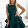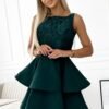 Dress with heavily flared skirt and elastic lace. Fastened at the back with a covered zipper. Dress in the color of bottle green. Brand Numoco. Polish product.