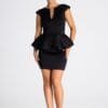 Foam dress. Interesting cut with a basque element. The dress has a simple pencil cut, with small sleeves covering the upper arm. Fastened at the back with a covered zipper.