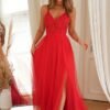Extremely girly dress model sewn from lovely lace. Dress on thin straps, with a heart neckline, finished with a minimalist mesh. The bottom is layered, flared, intertwined with a belt. The dress has a lining, fastened with a covered zipper. Model available in a beautiful range of colors.