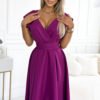Scarlett is a charming dress with a flared cut, characterized by an elegant envelope neckline and a belt that accentuates the waist. It is made of high-quality brocade fabric. Color: Fuchsia. The numoco brand guarantees high-quality craftsmanship, and production in Poland demonstrates a commitment to high-quality sewing. This dress is a perfect choice for various formal occasions such as christenings, weddings, communions, New Year’s Eve parties, or evening outings, giving every woman an elegant and sophisticated look.