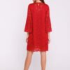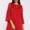 A unique trapeze double layer dress that combines classic elegance with romantic details. Made of smooth fabric on the bottom, while the outer layer is a delicate lace, which gives the whole a subtle and sophisticated look. The elbow-length sleeves are finished with a charming frill, introducing lightness and a feminine touch. The knee-length dress provides comfort and freedom of movement. Worn over the head, it has a discreet clasp at the back for easy donning. Designed and sewn in Poland, it impresses with the quality of workmanship and attention to detail. Ideal for special occasions, when you want to feel stylish and elegant.