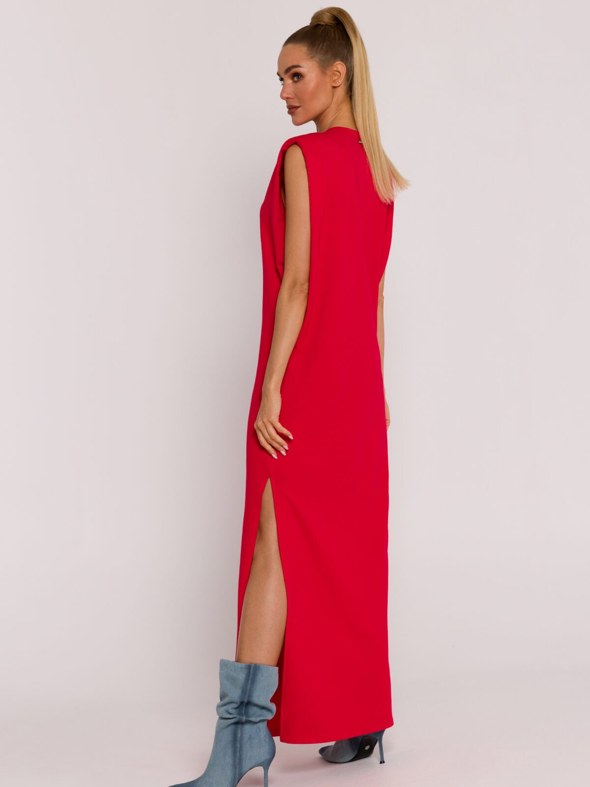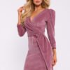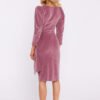 Elegant velour knit dress that combines comfort with sophisticated style. The top of the dress has an envelope cut, subtly emphasizing the neckline, and a decorative sash that adds a chic touch. The knee-length pencil bottom emphasizes the feminine silhouette, and there is a high slit at the back, giving the creation sensuality. The dress has 7/8 length sleeves, with a delicate crease on the shoulders and an overlap, which gives the whole an elegant expression. Partially lined, with a concealed zipper on the side, providing a discreet closure. Designed and sewn in Poland, it is the perfect choice for special occasions.