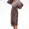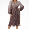 Sequin envelope midi dress with long sleeves, ombre. Elegant midi dress with an envelope cut, sewn from sequin material that goes from light gray to deep blue ombre. Ideal for special occasions such as New Year’s Eve, weddings or formal dinners. The ombre effect gives the dress a unique character, attracting the eyes. The envelope cut and waist belt emphasize the silhouette, while the V neckline adds sensuality. Long sleeves and satin lining provide comfort and elegance, making the dress an ideal choice for any special occasion.
