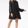 A-line mini dress with sequin sleeves Elegant A-line mini dress with sequin sleeves from the Polish brand Awama. Perfect for special occasions, such as dates, theater outings, or holidays. The A-line cut subtly hides the silhouette, providing lightness and comfort when wearing. Sequin sleeves add shine and attract attention. The round neckline elegantly highlights the neck, adding feminine charm. The dress is fastened with a concealed zipper, ensuring a perfect fit to the silhouette. A must-have for any elegant occasion!