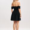 Elegant mini dress made of high-quality fabric, with a covered zipper at the back. The model is cut off at the waist, with a beautifully exposed back. Ideal for any occasion.