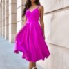 Dress with a length of 7/8 with straps, deep wrap neckline, cut under the bust. Flared bottom. An ideal proposition for many occasions.