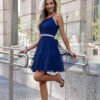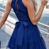 Elegant tulle dress with straps and adjustable tie. The dress fastened with a hidden zipper. Decorative belt for tying at the waist. Slightly flared bottom.