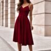 Dress with a length of 7/8 with straps, with a deep wrap neckline, cut under the bust. Flared bottom. An ideal proposal for many occasions.