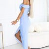 Go for subtle elegance and a stunning look! This fitted midi dress in a shade of blue is the perfect choice for women who want to emphasize their silhouette with class. The sensual wrap neckline with falling straps and eye-catching ruches beautifully shape the figure and attract attention. Made of comfortable, elastic material, it provides comfort throughout the day and evening.