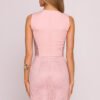 Sophisticated dress with a fitted cut that emphasizes the silhouette and combines classic with a modern accent. Made of smooth, pleasant to the touch fabric, it has been complemented with lace inserts on the sides and at the bottom, which not only add elegance but also visually shape the waist and slim the figure. The high neckline and sleeveless design give the dress a minimalist character, while the pencil cut reaching just above the knee will be perfect for formal occasions and evening outings. The dress is fastened at the back with a discreet, concealed zipper, ensuring comfort and aesthetic finish. Designed and made in Poland, with attention to every detail. Lace 90% nylon, 10% spandex.