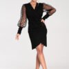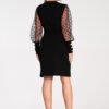 Dress with eye-catching polka dot sleeves. Decorative golden buttons on the front and cuffs.