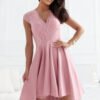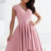 Do you dream of a dress that will make you feel feminine, sensual, and special? This model from Numoco is a combination of romance, elegance, and comfort in one! Perfect for a wedding, communion, date, or any other special occasion where you want to look stunning. The lace top with a V-neck subtly accentuates the bust and shoulders. The flared, asymmetrical bottom beautifully flows with movement, adding lightness and charm. The soft, pleasant to the touch material guarantees comfort all day long. Delicate lace sleeves for a romantic finish. Thanks to its classic length and pastel pink color, the dress is timeless and very versatile. You can style it in many ways with elegant heels, sandals, or even ballet flats. A product from the Polish brand Numoco.