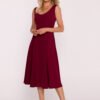 A classic flared dress is the essence of feminine elegance and timeless style. Made of smooth fabric with a delicate sheen, it beautifully reflects light and subtly emphasizes the character of the styling. The model has a simple, round neckline and sleeveless cut, making it look light and elegant. The fitted top smoothly transitions into a flared bottom, which freely moves with every step, giving the silhouette grace and lightness. The waist is accentuated by precise cutting, visually slimming the figure and highlighting its proportions. A concealed zipper is placed at the back, ensuring easy putting on and a smooth finish. Designed and sewn in Poland with attention to detail and quality of workmanship.