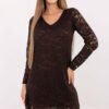 Elegant knee-length dress, made of a dominant blend of polyester and elastane, which provides comfort, flexibility, and a beautiful fit to the silhouette. The model delights with an openwork pattern and subtle lace, creating an exceptionally feminine, elegant look. The dress has a lining, which makes it look elegant and guarantees full comfort of wearing, even though the long sleeve remains without a lining, maintaining lightness and delicacy. The sweetheart neckline is located both at the front and back, adding a sensual yet still elegant character to the outfit. The model does not have a fastening, making it easy to put on and perfectly fit the silhouette. It is an ideal proposition for formal occasions, but it will also work great for work if you want to look stylish, feminine, and professional at the same time.