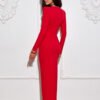 Midi dress with an exceptionally feminine cut, with a long slit at the front, which adds lightness and a sensual character. Made of high-quality fabric, a combination of viscose, elastane, and nylon, perfectly molds to the silhouette, providing comfort when worn. The V-neck beautifully emphasizes the neckline, and the delicate ruching at the front visually shapes the figure. Long sleeves and shoulder pads give the whole outfit an elegant, modern look. The dress was designed and made in Poland, guaranteeing the highest quality of workmanship and attention to every detail. Perfect for special occasions and evening outings, just choose the right accessories to create a stylish and classy outfit.