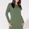 Wide cut dress with pockets on hips. Bottom, sleeve and neckline left raw. Attached to the dress is a collar that gives a chic and elegant.