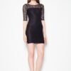 Chic lace dress with 3/4 sleeves. Dress beautifully shapes the figure giving it a feminine look.