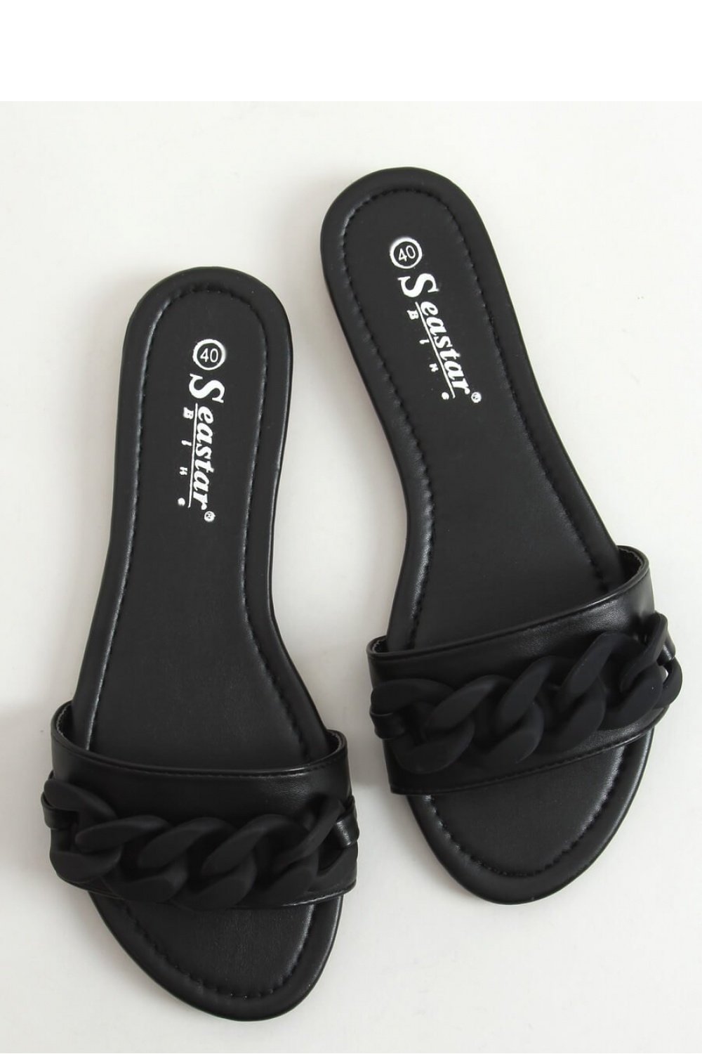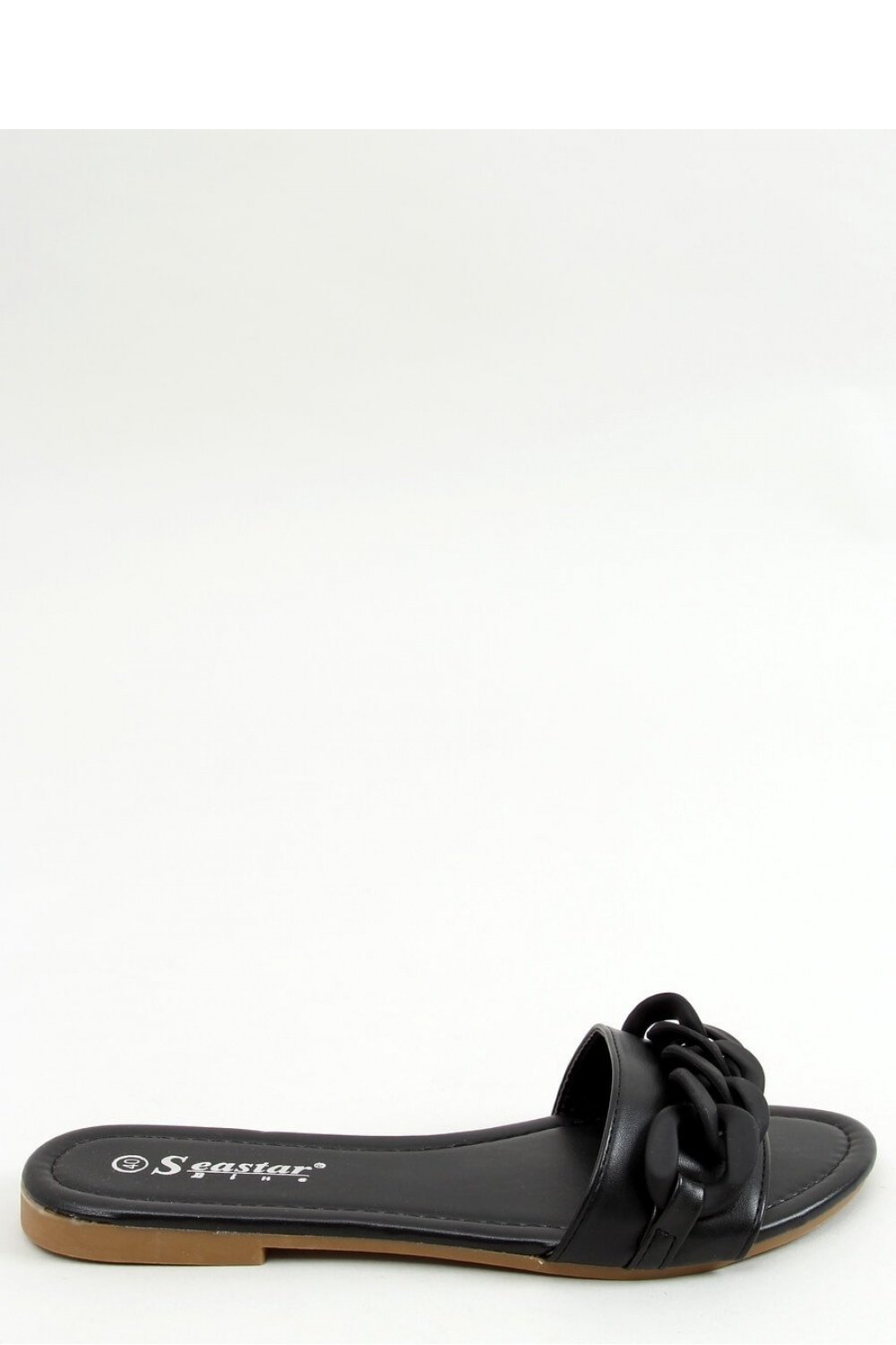 Ladies’ flip-flops on a flat sole. This unique model with chain in mat finish is fashionable, comfortable and practical solution: ) You can’t miss them in your summer wardrobe! External material ? ecological leather.