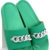 Stylish women’s flip-flops on a rubber sole. The model is distinguished by this season’s most fashionable chain with glittering stones – a wow effect is guaranteed! Profiled inner insert will ensure comfort on every step: ) In these shoes you will feel fashionable, feminine and extremely comfortable – see for yourself! Outer material ? ecological leather.