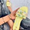 Women’s flip-flops on a flat heel. The eye is attracted by a wide strap decorated with colorful and shiny stones : ) Wow effect guaranteed! Give them a chance to conquer your closet, and you won’t regret it…. Outer material ? ecological leather.