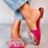 Women’s flip-flops on a flat heel. The eye is attracted by a wide strap decorated with colorful and glittering stones : ) Wow effect guaranteed! Give them a chance to conquer your closet, and you won’t regret it…. Outer material ? ecological leather.