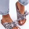 Classic flip-flops on a cork sole have a contoured insole. They are made of textile material on the outside, while the insole is made of eco-suede. On the front there is a charming bow. The flip-flops will work well in many situations: everyday, for work or shopping, but also at home instead of slippers. This model is perfect for summer!
