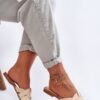 Women’s flat-heeled flip-flops with a rubber, non-slip sole are great for everyday use. The upper is made of textile material, while the insole is made of a combination of plastic and material. This classic model is characterized by interlaced straps. The presented model will provide high comfort, even on the hottest days!