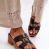Elegant women’s flip-flops made of natural leather. Gold decoration adds a note of elegance to them. This is the perfect footwear for summer evenings or meetings, where you want to feel both stylish and comfortable.