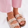 Women’s flip-flops made of textile material are a great option for hot days. Two straps with buckles allow for easy adjustment to the foot, and the cork platform adds lightness and a modern look. The contoured insole provides comfort for wearing all day, making these flip-flops a perfect choice for walks or vacation travels. A combination of comfort and style in one!