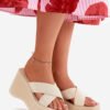 Light women’s sandals on a platform and wedge that combine comfort with a trendy look. The upper part of the shoes is made of textile material, ensuring breathability and comfort. Perfect for summer trips, they match perfectly with summer dresses, skirts, or shorts, adding lightness and stylish character to any outfit.