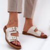 Leather women’s slides with a flat heel are an elegant option that combines comfort with modern style. They feature two gold buckles with adjustable straps, which not only provide the perfect fit for the foot but also serve as a fashionable accent, adding a subtle shine. With their flat heel, these slides are comfortable and stable, making them perfect for everyday wear, whether for casual or more elegant outfits. The leather upper guarantees durability and comfort, ensuring that these slides are an excellent choice for hot days.