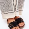 Stylish women’s sandals made of eco suede, decorated with a buckle and studs, which give them a modern and bold character. Set on a platform with sequins that add a subtle glow to every outfit. Perfect for summer days, these sandals combine comfort with a fashionable look, perfectly matching dresses, skirts, and pants.