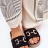 Slippers made of eco suede. At the front, there is a decorative gold detail that gives them a subtle shine. Set on a platform decorated with sequins, they bring a touch of glamour to any outfit. The profiled insole ensures comfort throughout the day. Perfect for summer days, these slippers go perfectly with dresses, skirts or pants, combining a fashionable look with functionality.
