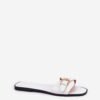 Women’s sandals made of ecological leather, set on a flat heel. This model is distinguished by a gold buckle on the strap, which gives them a delicate accent. Perfect for everyday wear, these sandals go great with summer dresses, skirts, and fabric pants.
