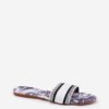 Flat women’s flip-flops made of textile material, which stand out with a unique pattern, adding a special character to them. These flip-flops are perfect for warm days, they go well with summer dresses, skirts or shorts, introducing lightness, color and a fashionable accent to everyday stylizations. Perfect for the beach as well as for city walks.