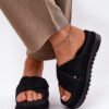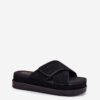Women’s suede-like slippers are a perfect choice for warm days. Set on a platform, they provide comfort and stability throughout the day. At the front, there are two interlacing straps, one of which has velcro, allowing for easy adjustment to the foot. These slippers are a combination of comfort with a fashionable look, perfect for summer styling.