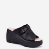 Women’s leather sandals are a stylish proposition for warm days. They stand out with a wedge heel and platform. At the front, there is a strap with a buckle. The soft leather insole ensures comfort, and the elegant design makes these sandals a perfect addition to summer outfits. Ideal for everyday outings and special occasions.