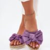 Women’s sandals made of eco suede. Mounted on a platform with braiding, they are a stylish and comfortable option for warm days. At the front, there is a subtle bow that adds charm to them. Light and comfortable, they go perfectly with dresses, skirts, and trousers.