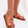 Women’s sandals made of eco leather are a stylish proposal for warm days. Set on a flat heel, they provide comfort all day long. Unique gold, sea-themed pins catch the eye, adding a unique character. The soft insole ensures comfort, and their elegant look perfectly complements summer stylizations, combining functionality with a fashionable accent.