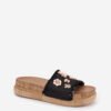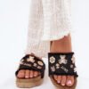 Women’s platform sandals with a strap made of textile material are a great choice for warm days. Golden pins add a fashionable character to them, distinguishing them from other models. Perfect for everyday styling.