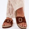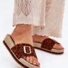 Women’s sandals made of eco suede are the perfect choice for warm days. At the front, the sandals have an adjustable strap with an elegant gold buckle, allowing for a perfect fit to the foot. Set on a platform, they provide additional height and comfort, while not compromising on comfort. Decorated with imitation braiding, which adds lightness and character to them. These sandals go great with summer dresses, shorts, or shorts, creating a fashionable and casual look for every day.