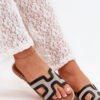 Women’s sandals made of a combination of eco-leather and textile material, set on a flat heel, are a comfortable option for everyday wear. There is a golden embellishment at the sole that adds a unique character to them. The soft insole provides comfort all day long, making the sandals perfect for casual and summer outfits.