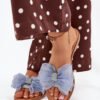 Women’s textile slippers set on a flat heel are an excellent proposition for everyday wear. They are distinguished by a tulle bow. Perfect for summer stylizations, they go perfectly with dresses, skirts or trousers, combining simplicity with subtle charm.